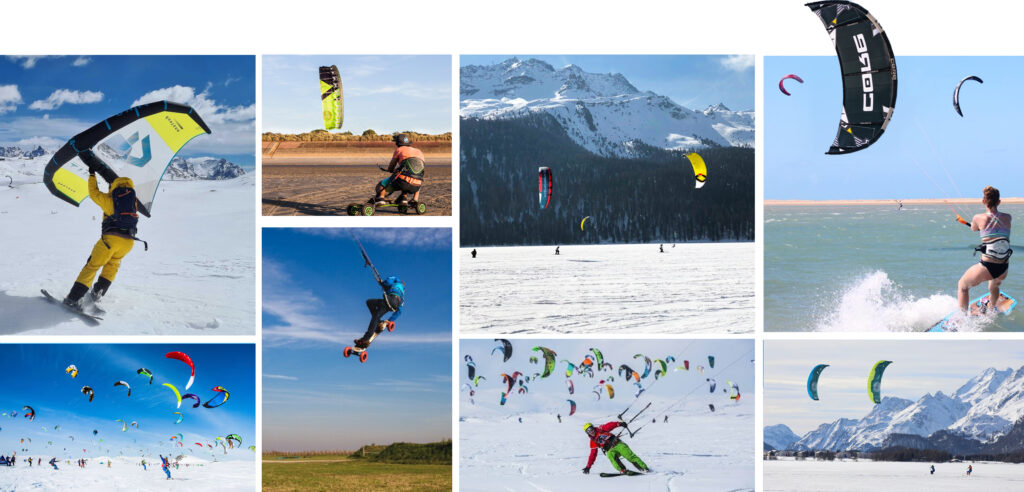 Erlebe den Nervenkitzel dieser mitreißenden Sportart in all ihren Facetten, egal ob beim Land-Kiten bzw. dem Kitelandboarden an Land, im Schnee beim Snow-Kiten oder beim Kite-Surfen im Wasser.